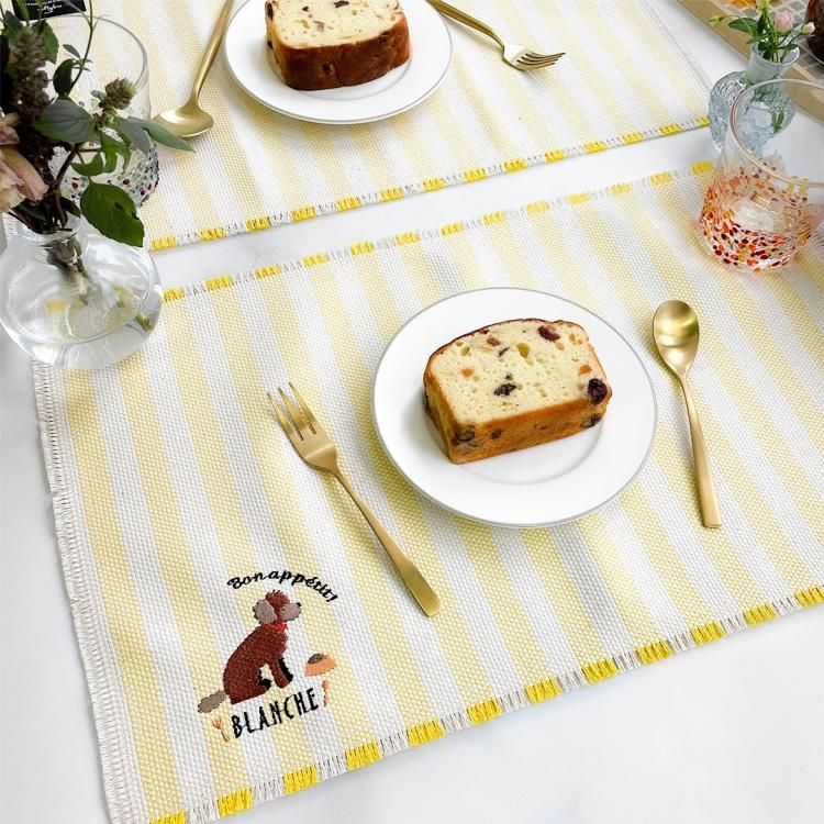・ランチョンマットの端はフリンジ加工が施されております。
